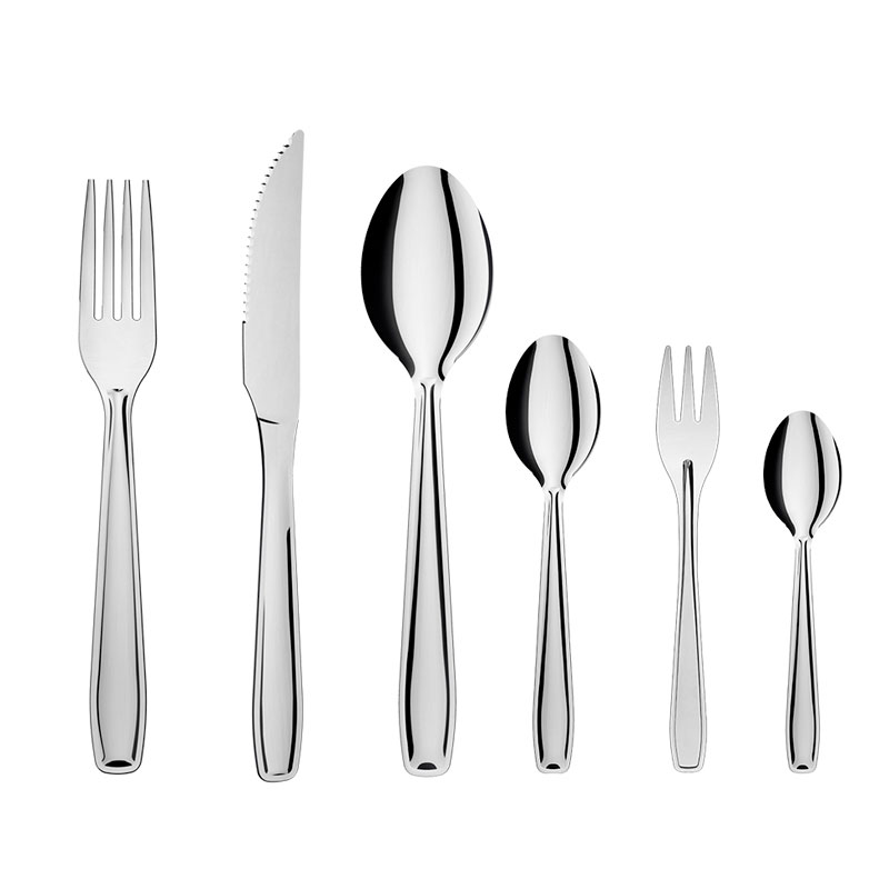 Siempre tenga a la mano el juego de cubiertos Cosmos de acero inoxidable con cuchillos para asado y terminación brillante de 24 piezas Tramontina.
