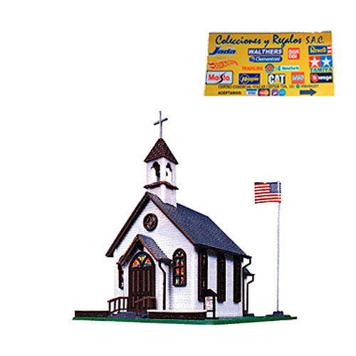 Este hermoso edificio quedará perfecto en un barrio de la ciudad o en una tranquila encrucijada rural. Diseñado para una fácil construcción, el kit de plástico incluye piezas moldeadas en colores y está completo con campanario, bandera y mástil, y cartel con mensaje.